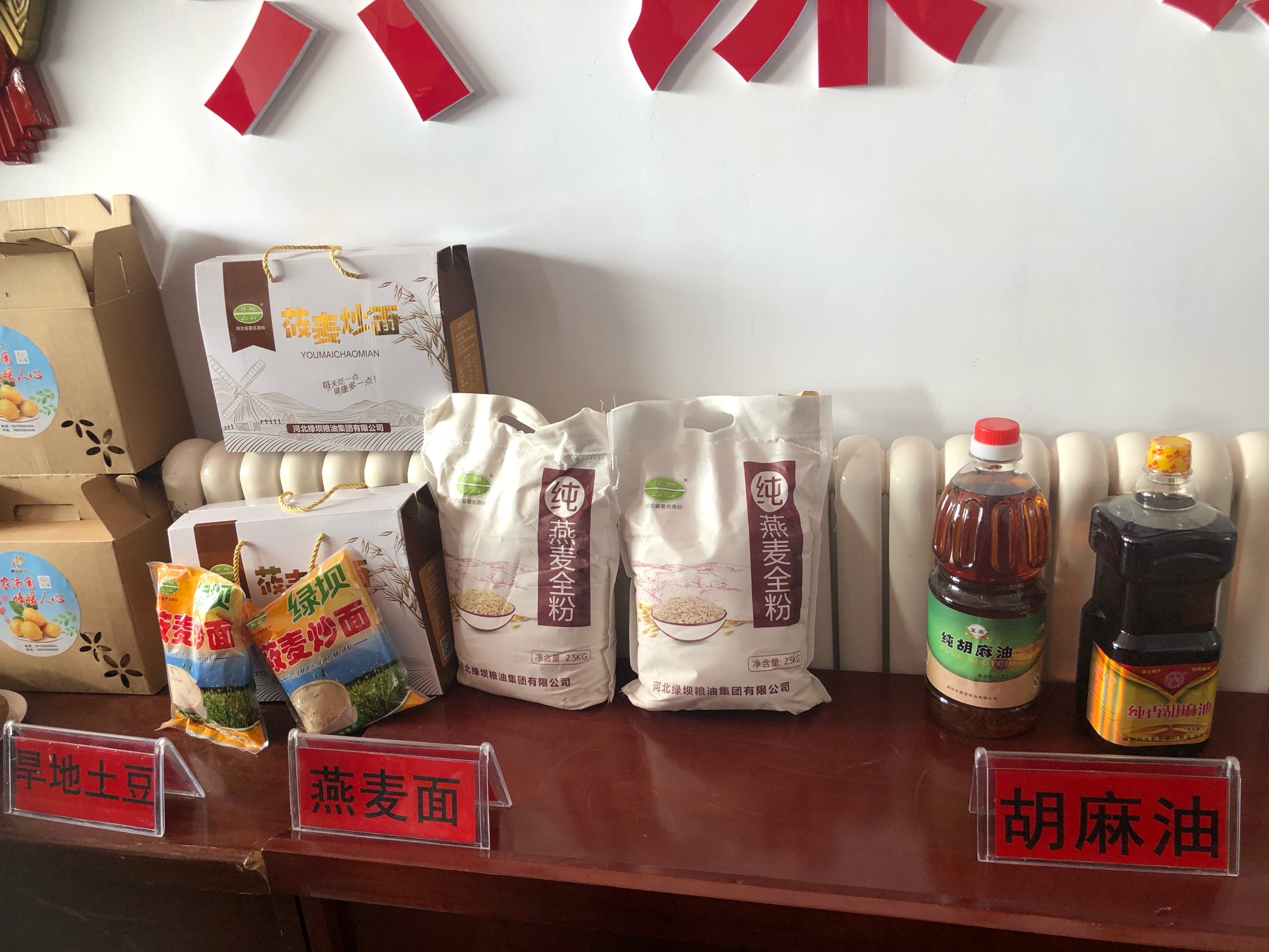 邢伟主任及街道一行人员参观农产品展示并听取产品介绍