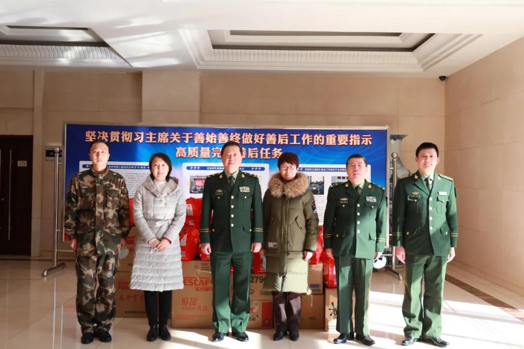 一行人来到武警原交通指挥部队善后工作组,邢伟主任详细了解部队生活保障及疫情防控等情况,对部队长期以来在平安建设、双拥共建、促进经济社会发展等方面作出的积极贡献表示感谢,并送上新年的祝福,致以新春的问候。