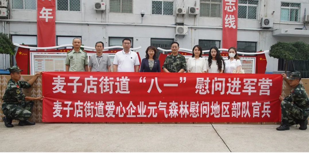 7月28日,在“八一”建军节即将来临之际,街道工委书记刘晓玲、工委副书记、办事处主任李霄、副主任孙涛、武装部长冯雷以及地区爱心企业元气森林(北京)食品科技集团有限公司到驻地部队开展拥军慰问活动,为驻区部队官兵送上节日问候和崇高的敬意。
