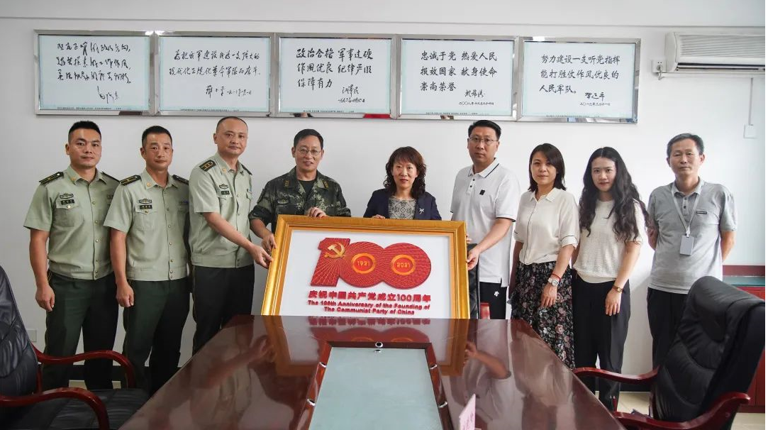 首先,街道一行人来到区武装部,并向区武装部赠送了慰问品和街道老年大学的衍纸作品《党旗》。