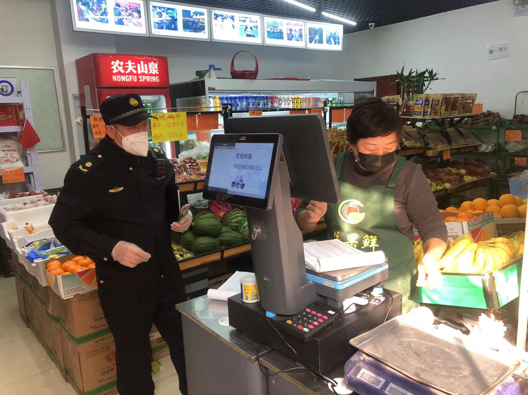 10月20日,潘家园执法队对辖区商户核酸检测记录进行检查。(通讯员 潘家园 崔乃文)