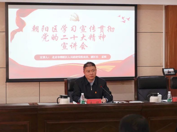 12月27日,北京市朝阳区人民政府党组成员、副区长孟锐来到区生态环境局宣讲党的二十大精神。会议由生态环境局党组书记、局长冷飞主持,以线上线下相结合的方式进行,全局在职、退休干部共计130余人参会。