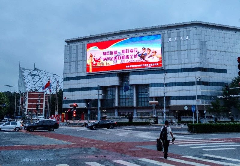 京信大厦户外大屏播放双拥宣传标语