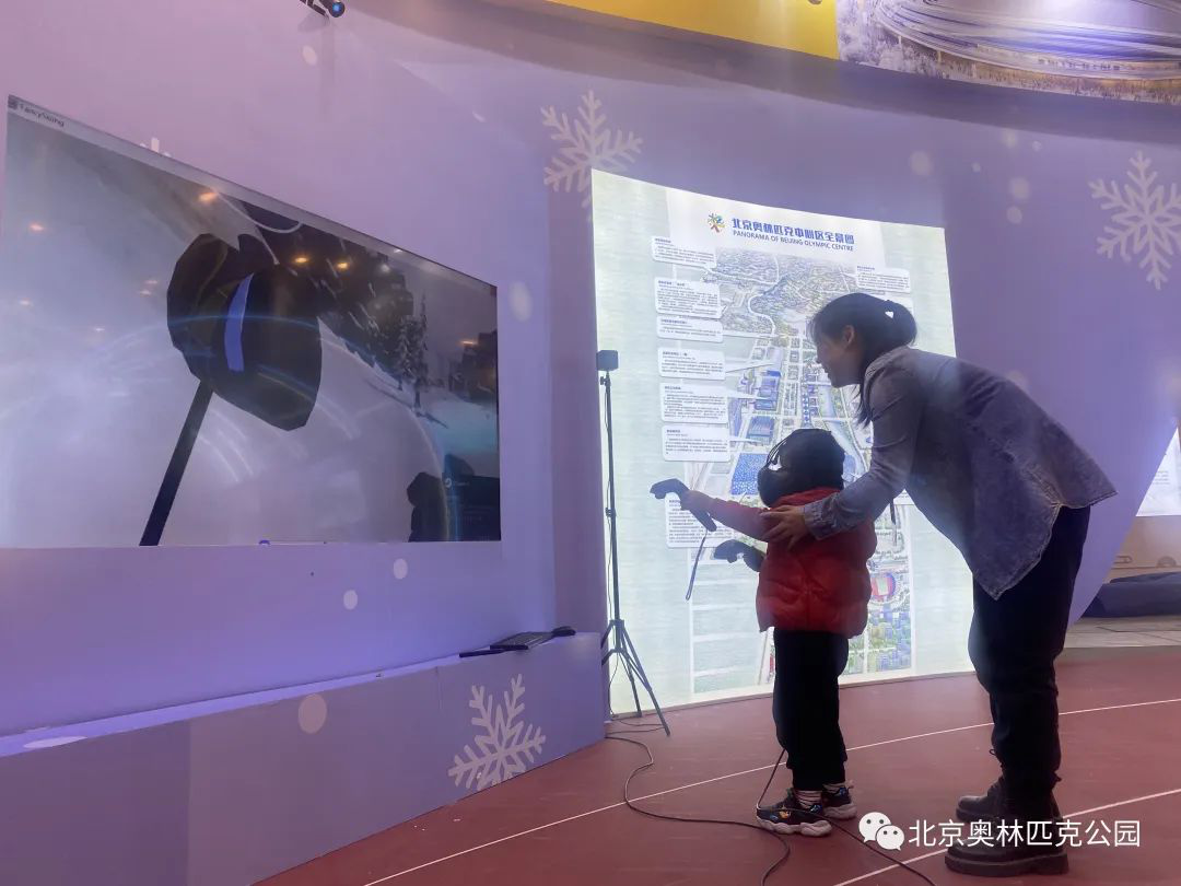 VR体验区使观展者身临其境地感受到运动带来的激情与快乐,冰墩墩人偶憨态可掬,引得大小朋友们争相合影留念,展台上精心准备的中心区品牌手册、研究报告和杂志等资料也受到来访观众的热烈欢迎。