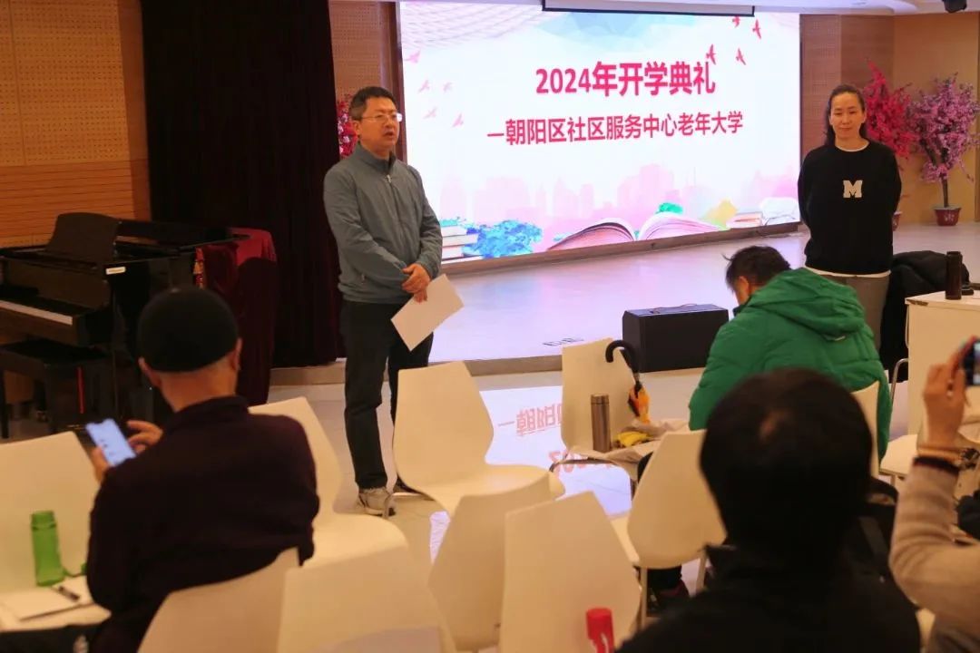 3月5日,朝阳区社区服务中心老年大学迎来了2024年春季开班典礼,社区服务中心副主任张旭、社区公益科负责人及老年大学师生30余人参加了此次开学仪式。