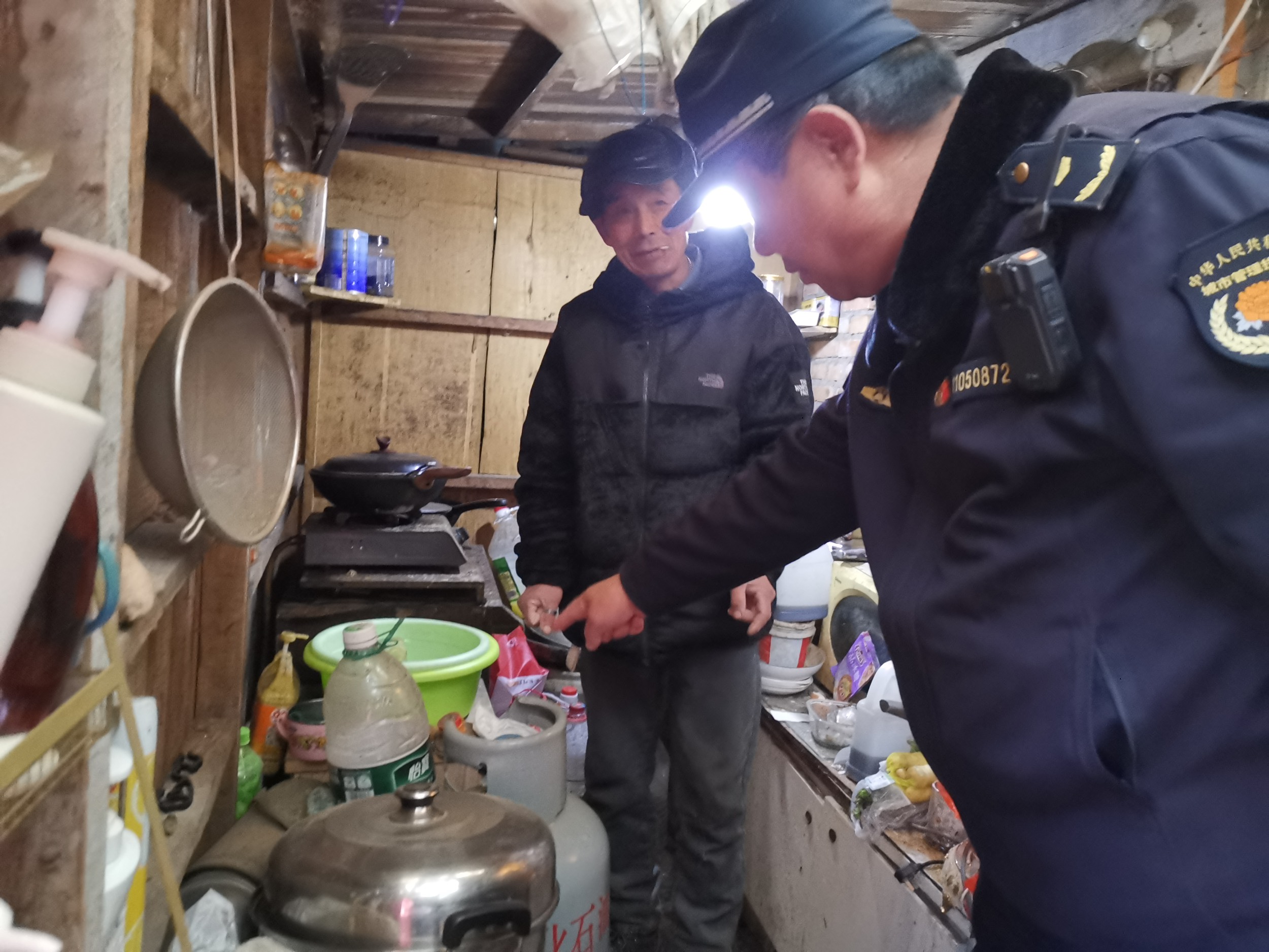 1月2日,局执法五队检查东坝地区村民自建出租房屋安全隐患。(通讯员 执法五队 卢戈)
