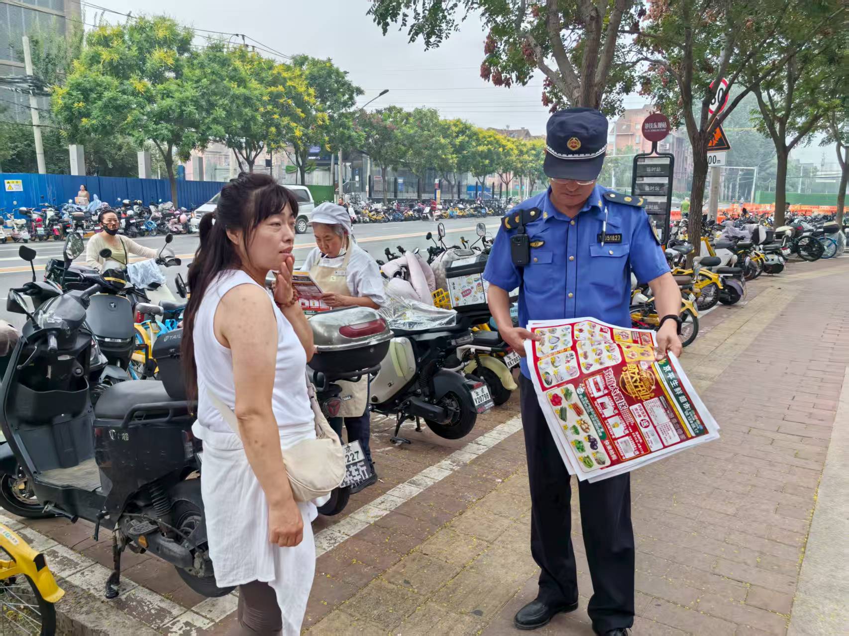 8月14日,局执法五队参加区城管委组织的街乡电动自行车安全隐患排查。(通讯员 执法五队 卢戈)