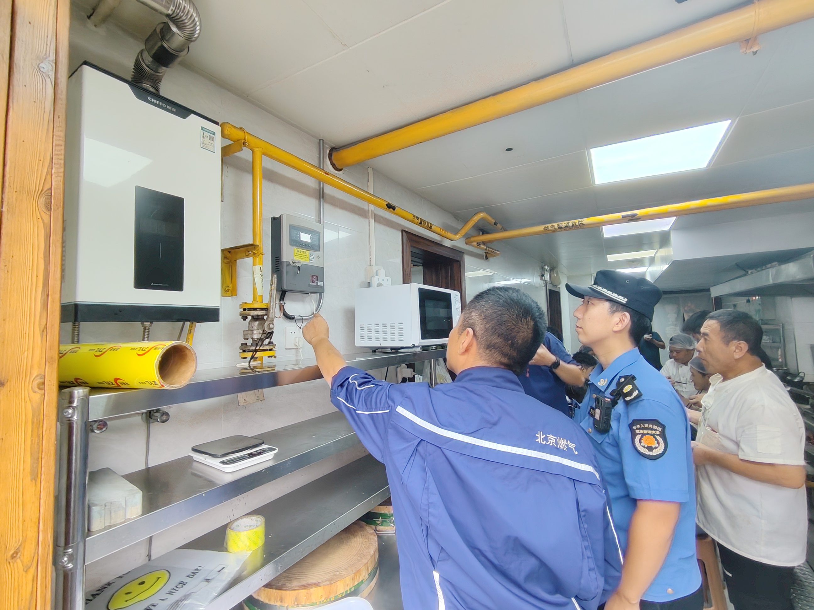 8月13日,管庄执法队联合燃气公司对辖区餐饮商户燃气安全情况进行检查。(通讯员 管庄 才慧)