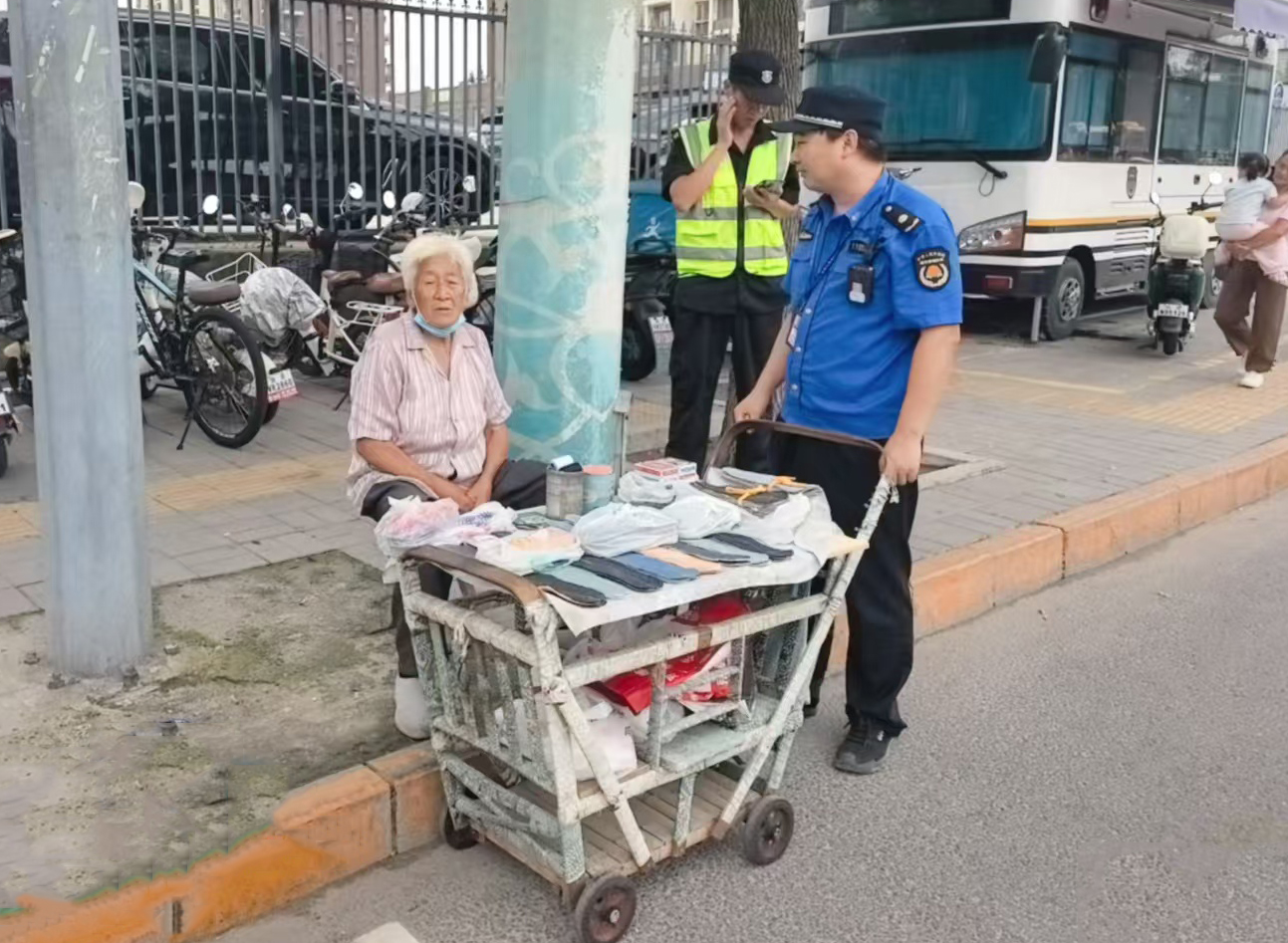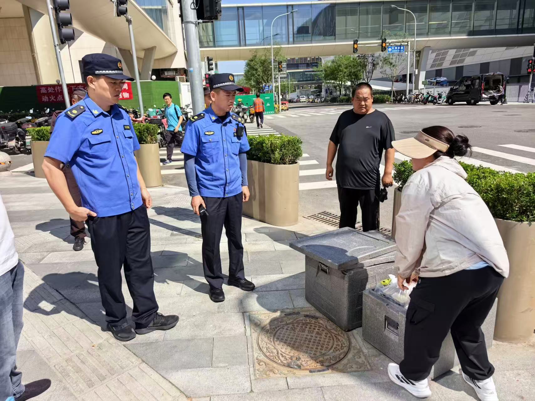 9月1日,奥林匹克中心区执法队对辖区无照经营进行劝离。(通讯员 奥林匹克中心区 沈庆锋)