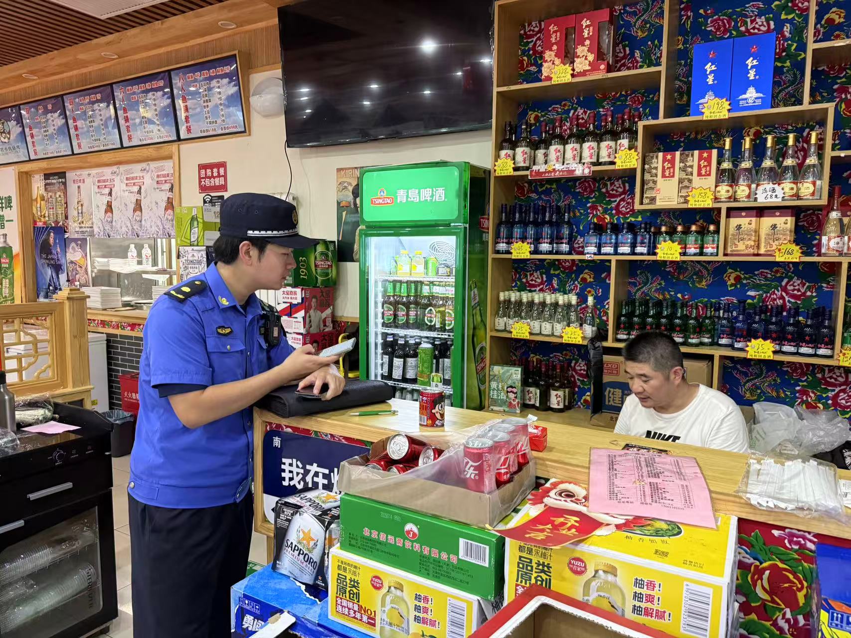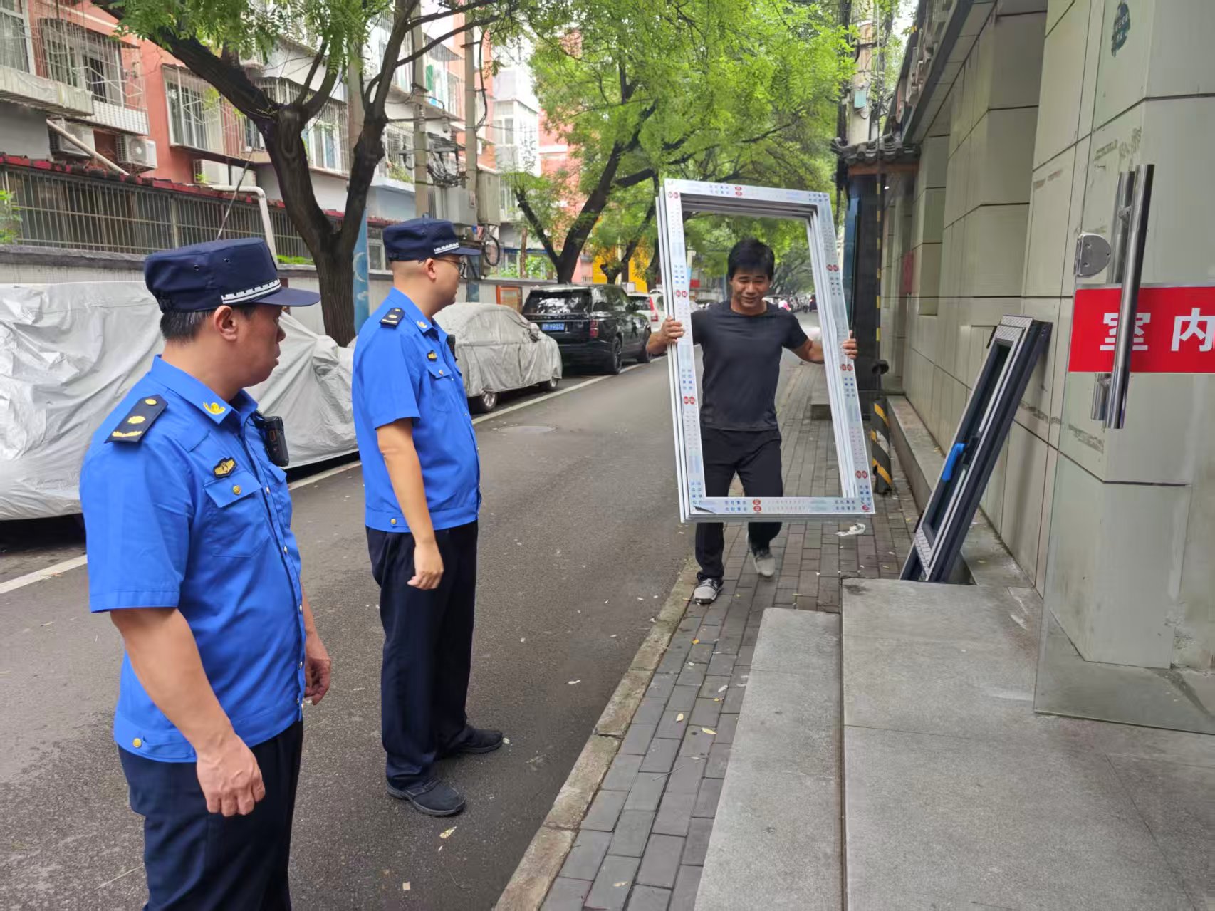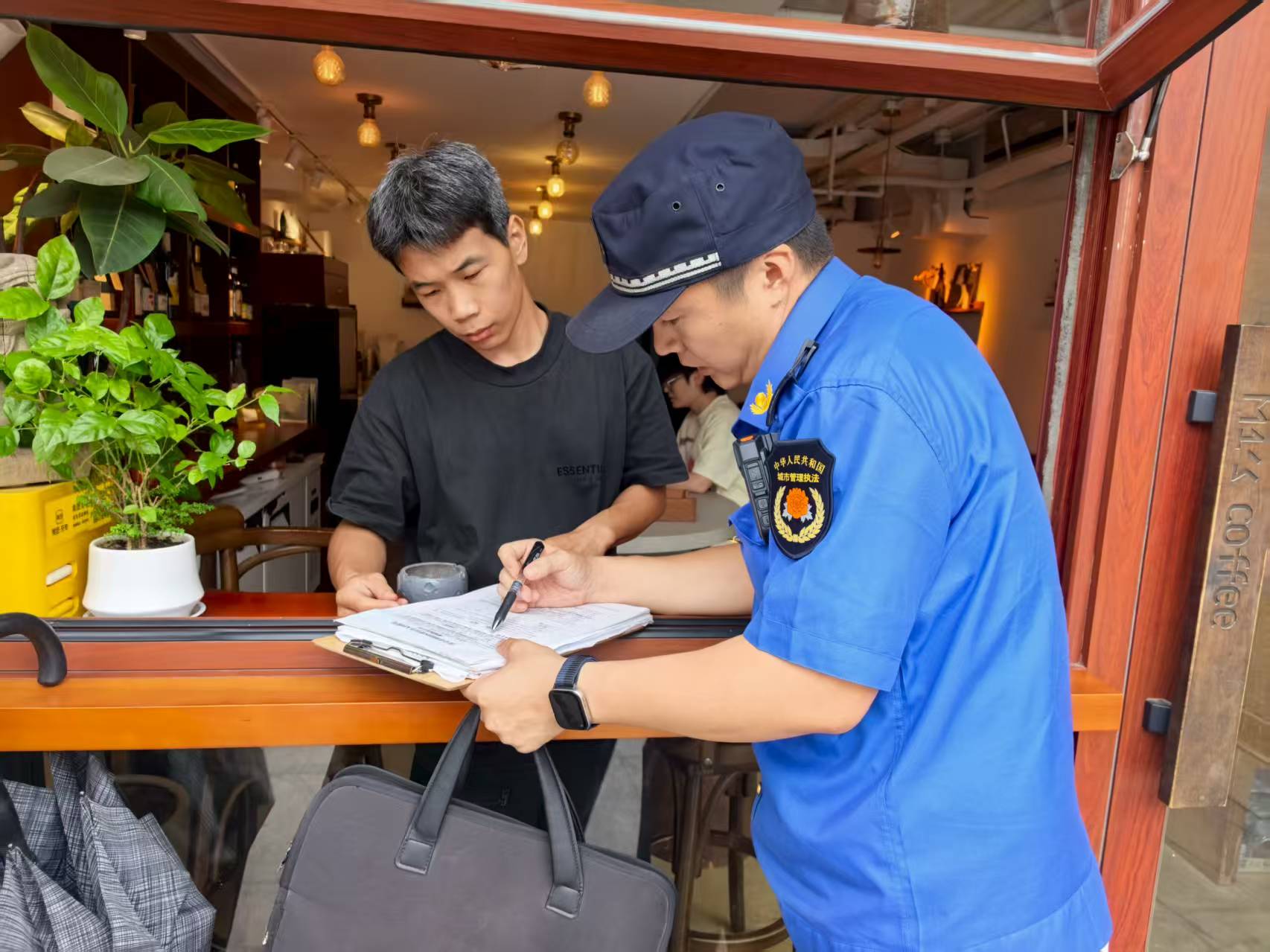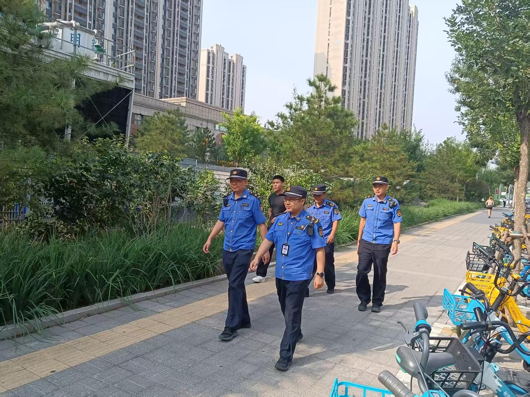 9月2日,团结湖执法队对辖区商户“门前三包”责任制落实情况进行检查。(通讯员 团结湖 许晨晨)