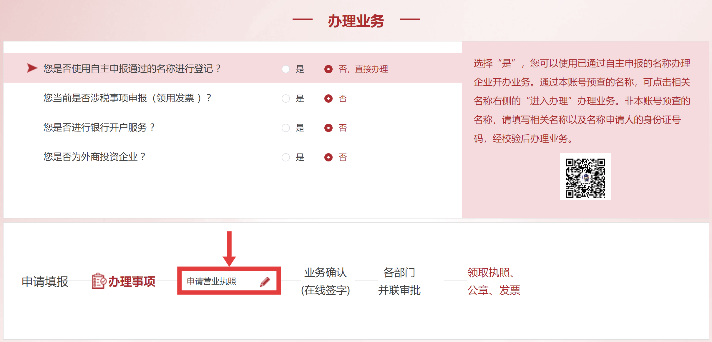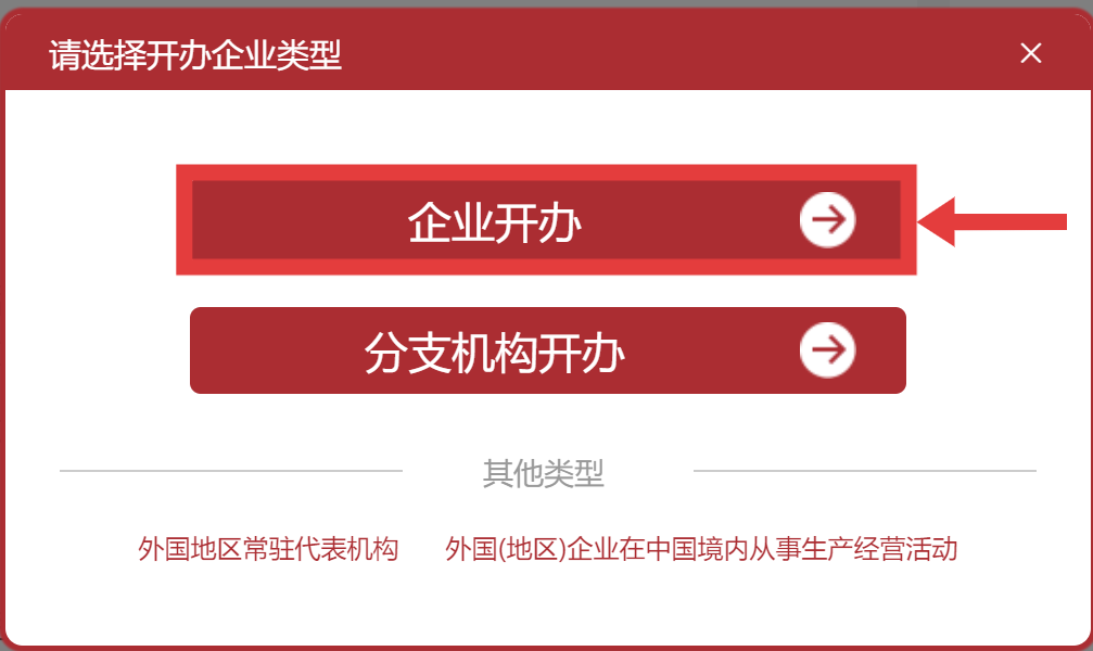 5.选择开办企业类型,“企业开办”或“分支机构开办”;