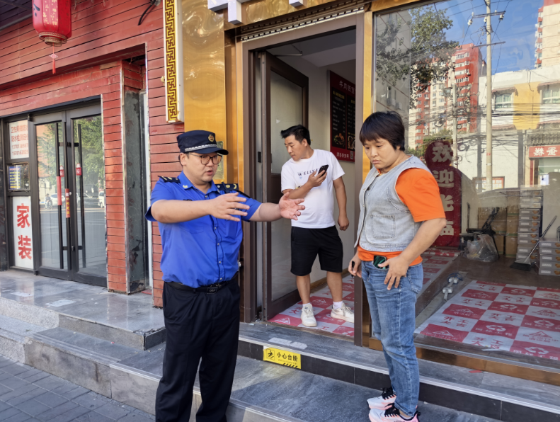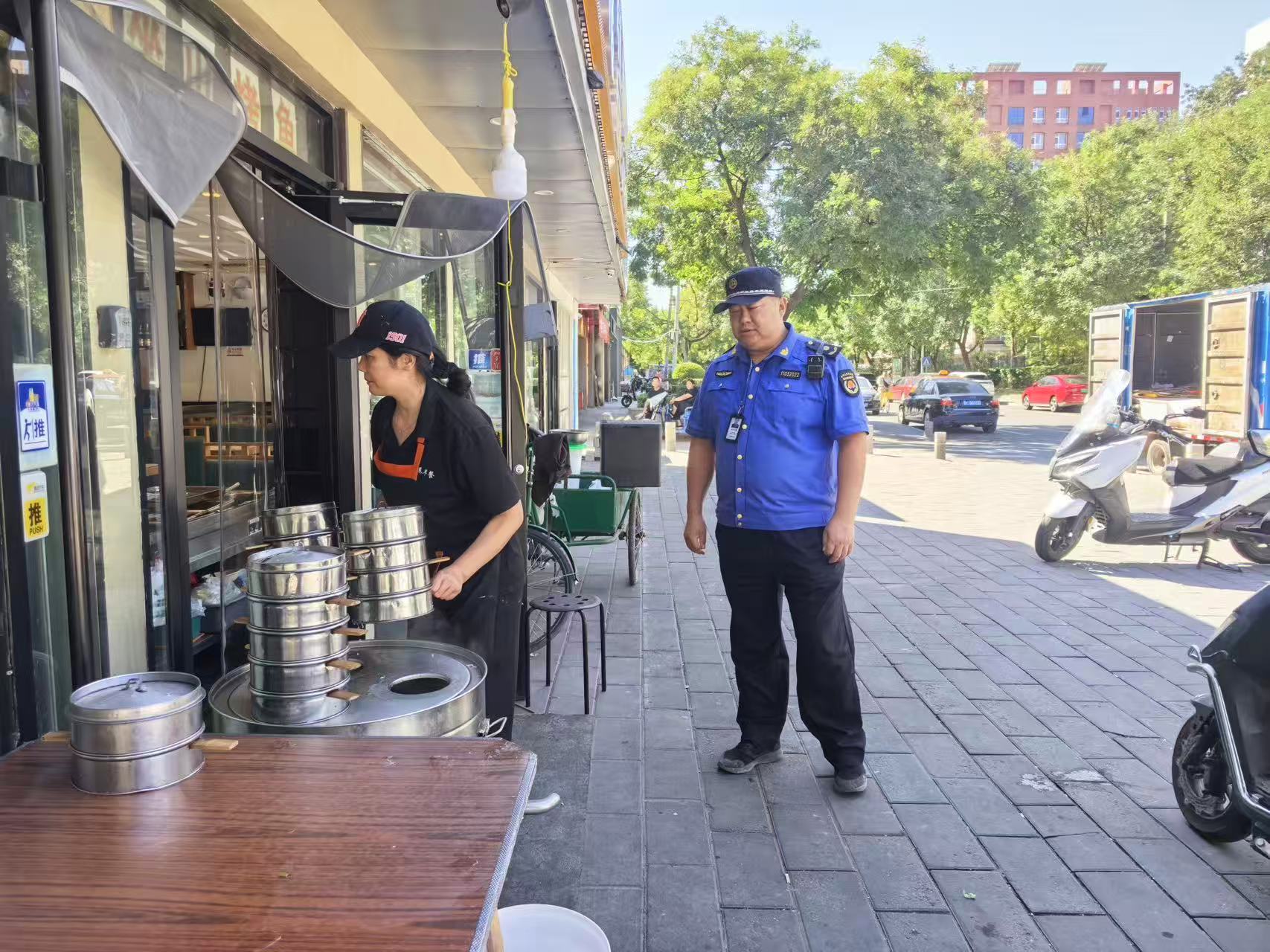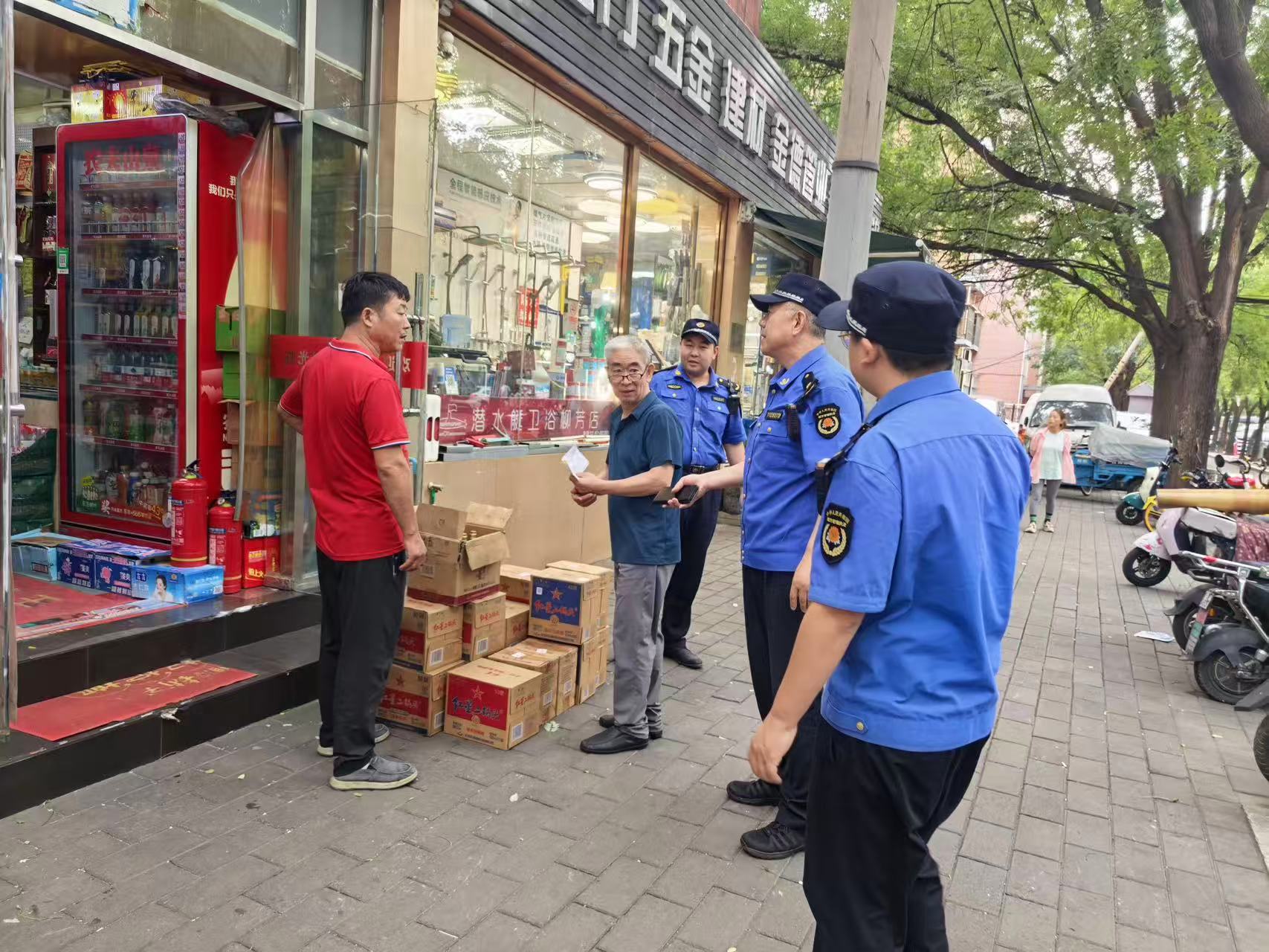 9月18日,六里屯执法队对辖区商户“门前三包”责任制落实情况进行检查。(通讯员 六里屯 邢鑫)
