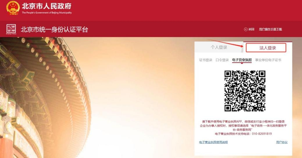 4.选择“法人登录”方式,进入办理系统。