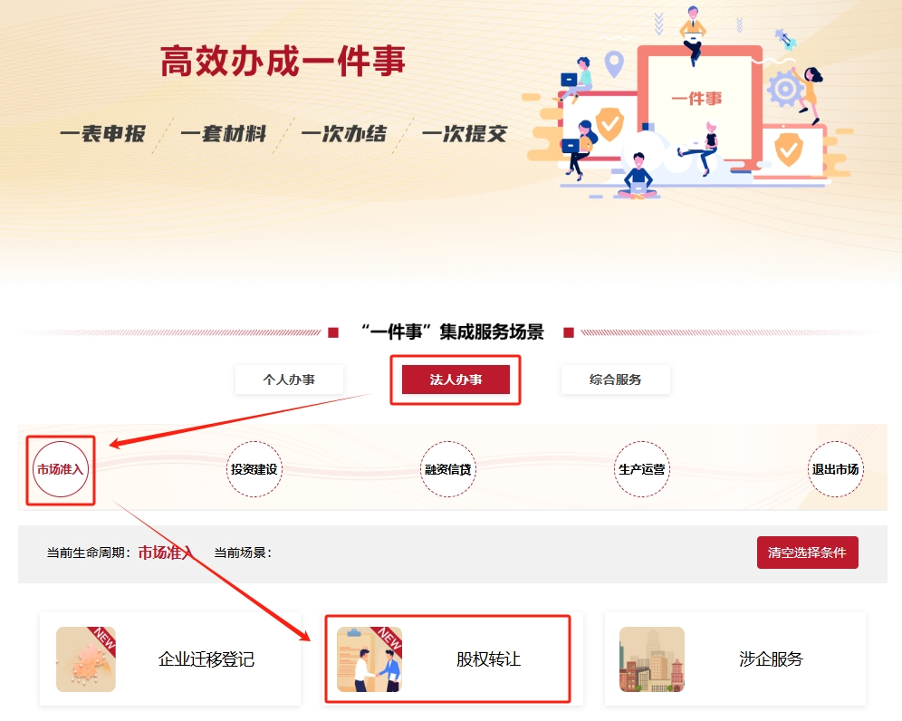 股权转让“一件事”线上申请流程