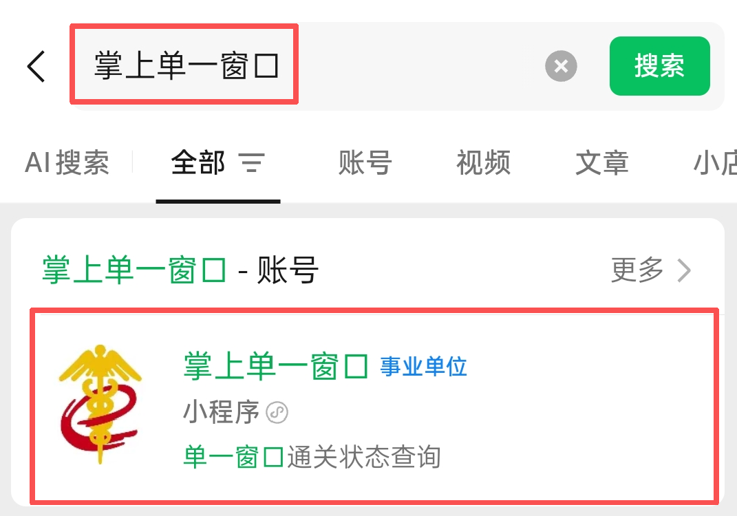 1. 在微信搜索“掌上单一窗口”进入微信小程序/APP;