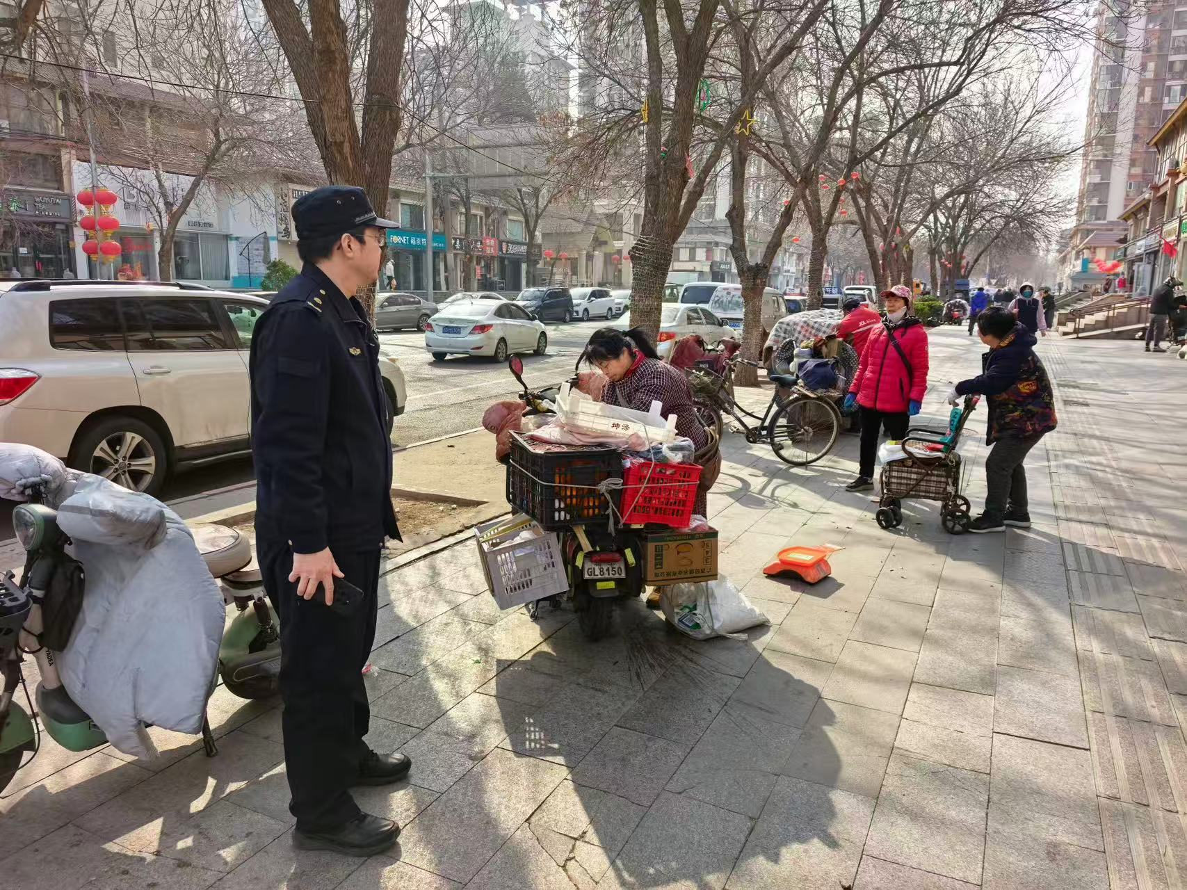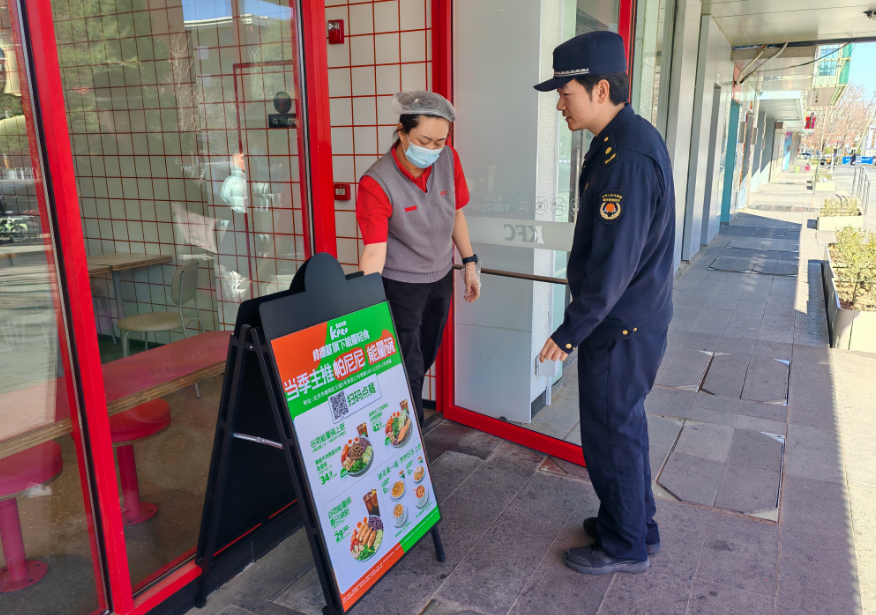 3月10日,六里屯执法队对辖区商户“门前三包”责任制落实情况进行检查。(通讯员 六里屯 荣岩)