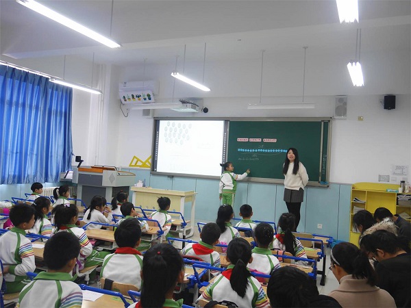 14日,李晓娟老师“( )里最大能填几”的数学课中充分给孩子们学生独立思考的时间,同时考虑到他们的个性需求,让学生可以根据自己的实际情况选择不同的方法探究新知,引导学生算法多样化,培养的学生发散思维,最大限度的开启每个学生的智慧。