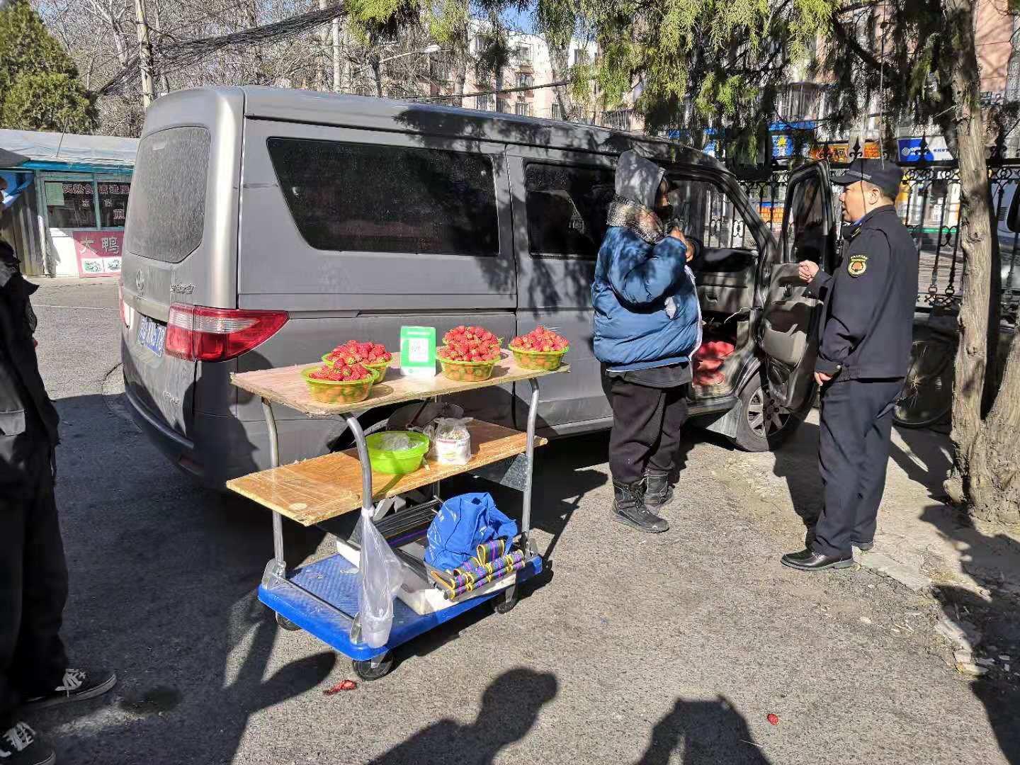 将台执法队在将台路东侧查处无照商贩占道经营行为