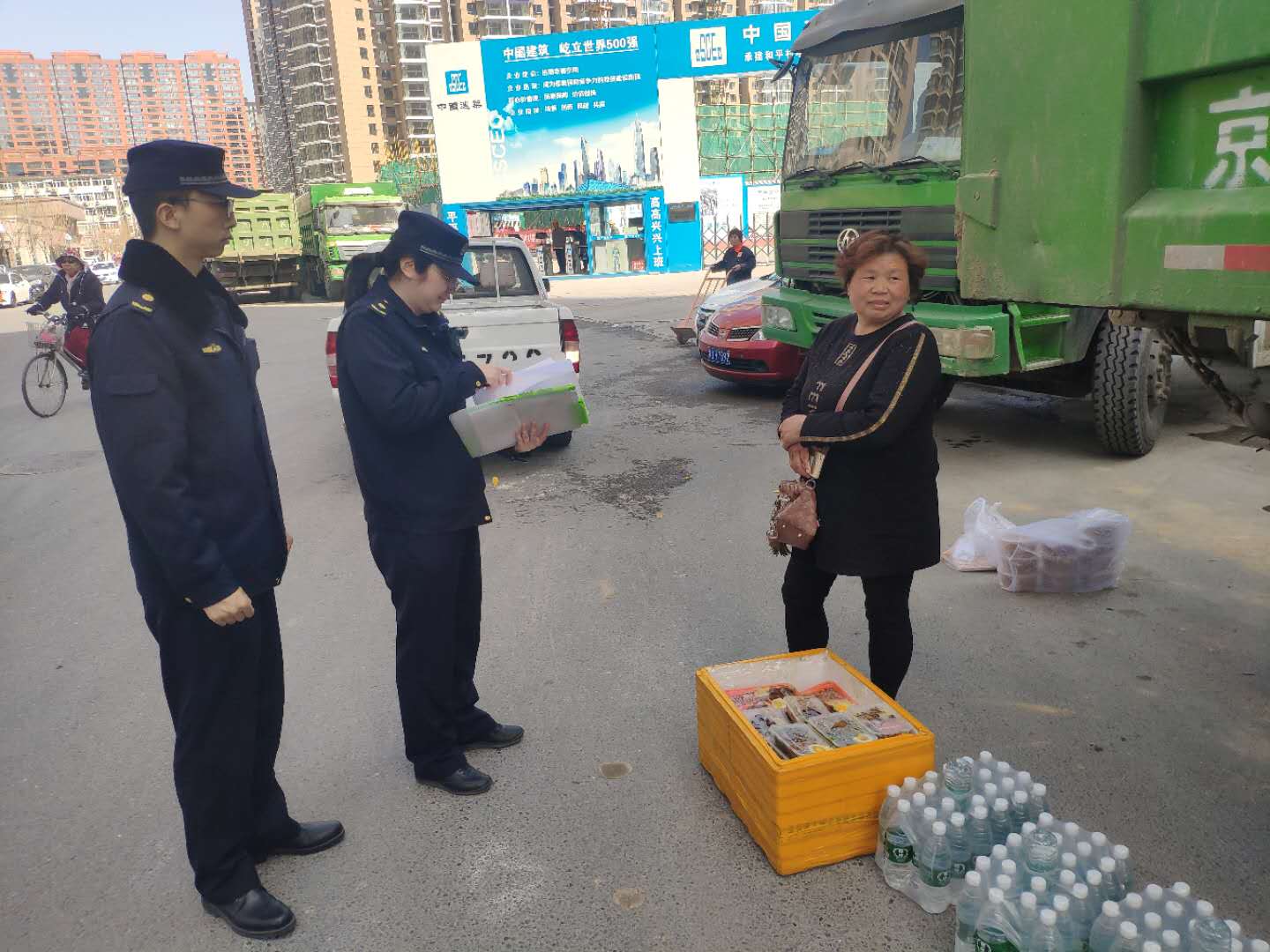 双井执法队查处和平村工地附近非法售卖盒饭行为