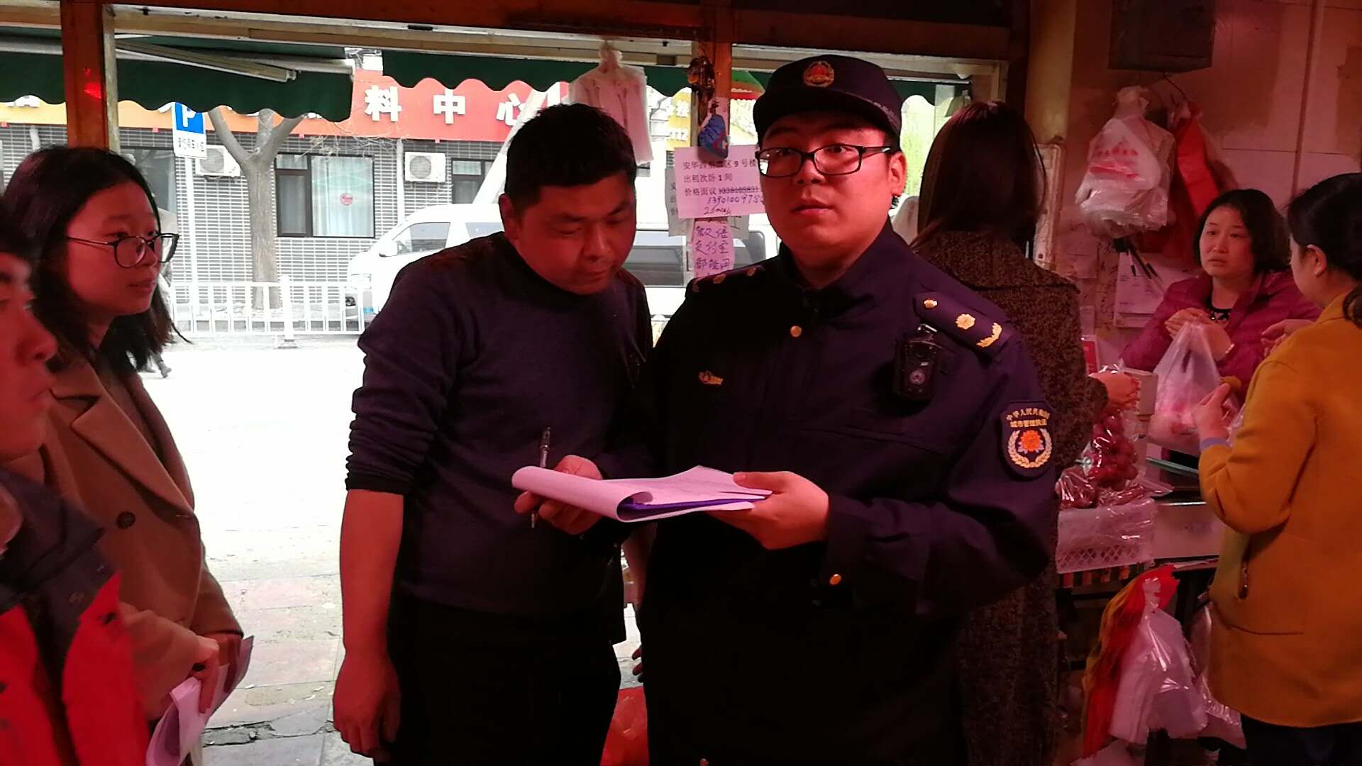 安贞执法队对安华西里商户“门前三包”落实情况进行检查规范