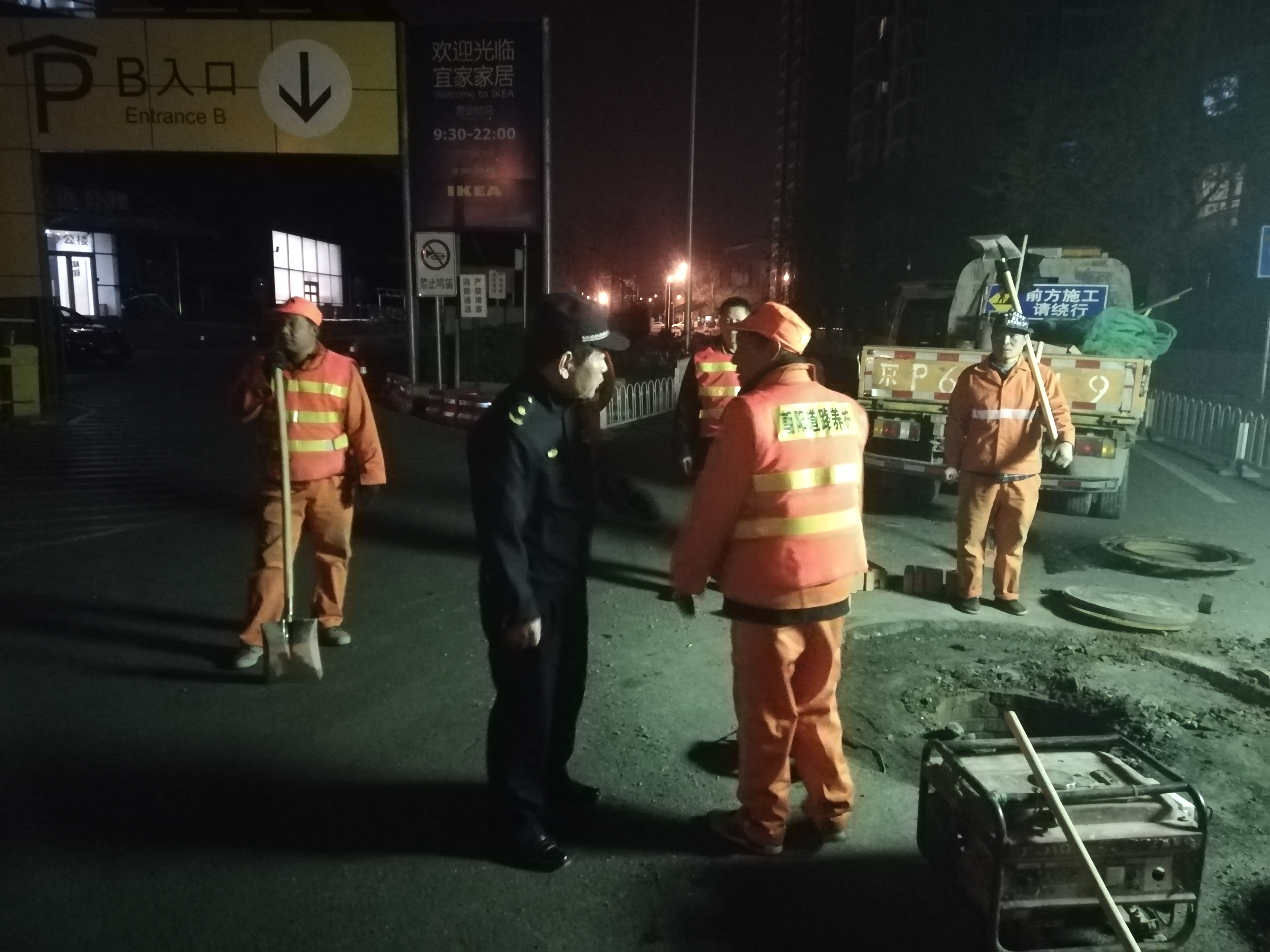 望京执法队对群众举报的宜家家居东侧夜间施工行为进行执法检查