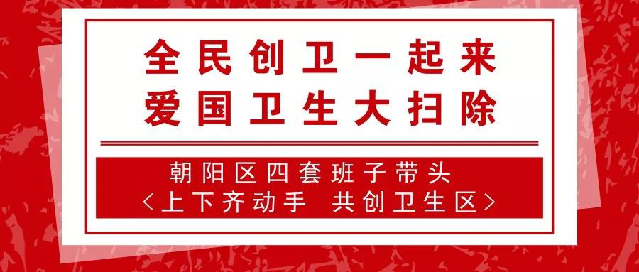 为了进一步深化朝阳区创建国家卫生区工作,在全区广泛开展爱国卫生运动,动员全社会力量广泛参与创卫工作,营造“全民创卫、全域创卫、全面创卫、全力创卫”的良好氛围,2019年7月27日,区委书记王灏,区委副书记、区长文献,区人大常委会主任陈宏志,区政协主席陈涛等区四套班子领导带头,各委办局、各街乡主要领导、党员代表、居民志愿者队伍、社会单位成员、部队官兵等广泛参与,在全区范围内开展“全民创卫一起来 爱国卫生大扫除”集中整洁行动,上下齐动手,共创卫生区。