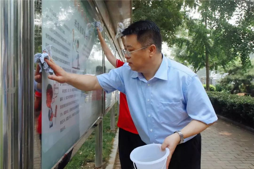 活动中,王灏手持小水桶和抹布,同机关干部、“双报到”党员、居民志愿者一起对建国里社区科普宣传橱窗进行擦拭,清理残留污渍。王灏一边劳动,一边询问建外街道创卫工作情况,并叮嘱建外街道要深入开展创卫活动,充分调动群众的创卫热情,营造浓郁的创卫氛围,让广大群众在参与活动的同时,能够深切地感受到创卫带来的巨大变化,切实提升群众的满意度和获得感。王灏对参与社区卫生大扫除和社区基层治理的消防指战员、公安干警、党员、居民、企业员工等表示感谢,同时指出,要积极鼓励公众参与社区治理,形成共建、共治、共享的良好氛围,为百姓打造更加宜居的城市环境。