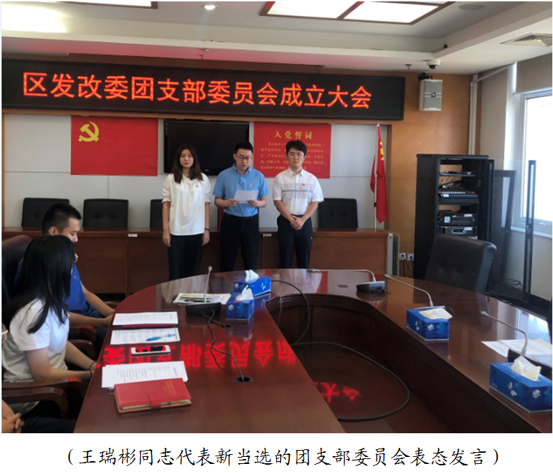 新当选的团支部委员王瑞彬同志代表第一届团支部委员会作了表态发言,他表示团支部成立以后,将在团区委和委党组领导下,尽快完善组织建设和队伍建设,团结带领全委团员青年,积极开展具有发改特色的团建活动,为党组织源源不断输送新鲜血液。并通过大会向全委团员青年发出倡议,努力践行习近平新时代中国特色社会主义思想,立足本职,勤奋工作,开拓创新,用勤奋和汗水谱写新时代的青春篇章。