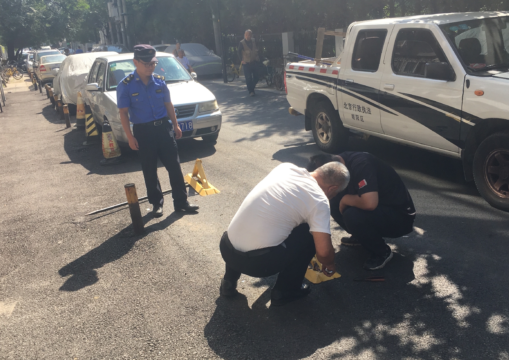 和平街执法队对小黄庄三条私装地锁进行整治