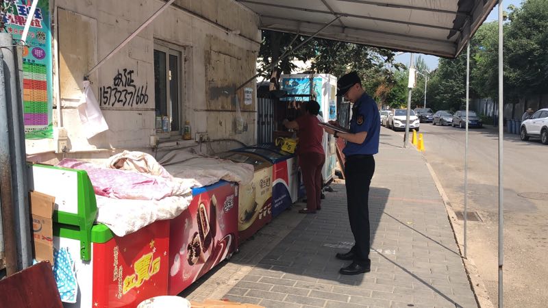 奥运村执法队对北苑路进行检查,并对地铁5号线北苑北站附近的1起无照经营进行查处