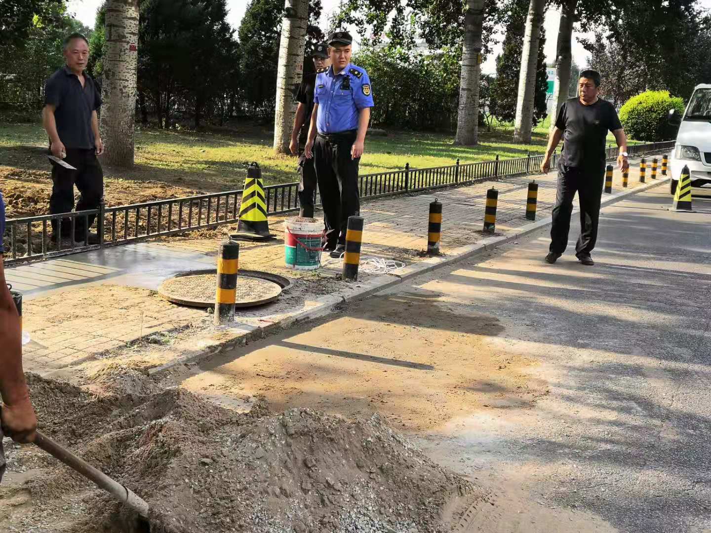机场执法队对机场西路违规施工进行规范