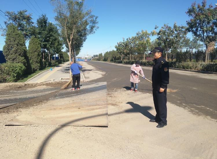 金盏执法队对群众举报的扬尘路段进行清扫和洒水降