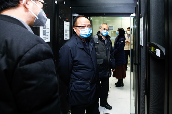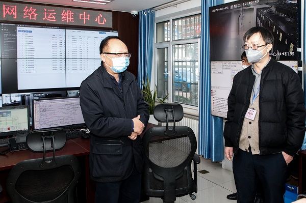 2月25日,朝阳区委教育工委书记周炜到信息网络中心检查指导中心新冠疫情防控工作。