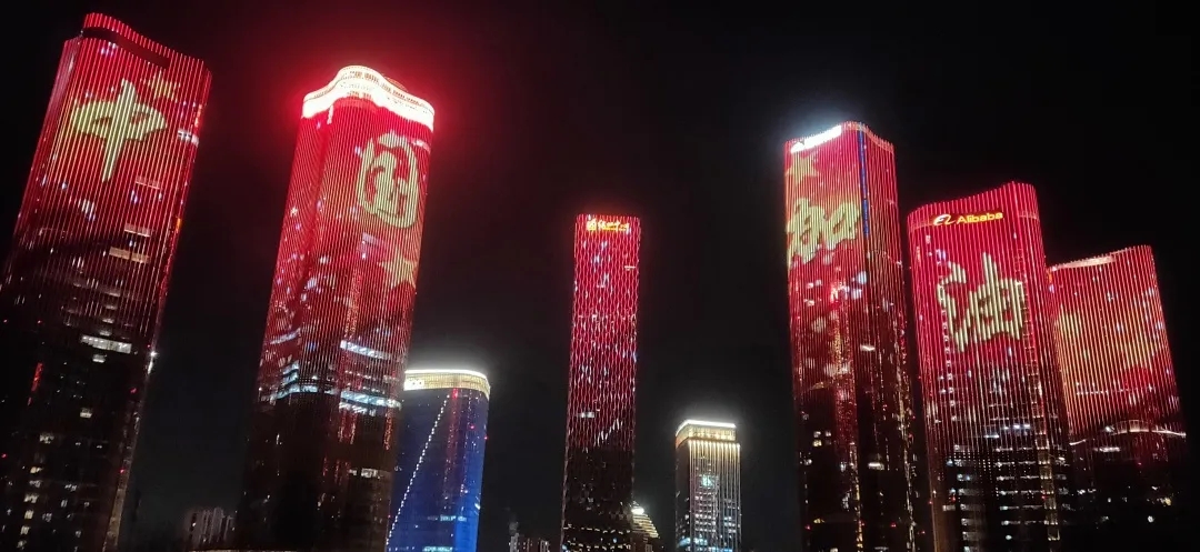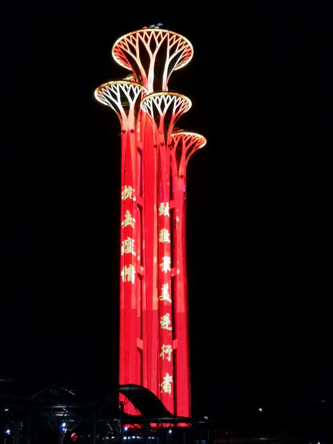 月升中天,华灯灿烂,区城市管理委城市景观管理科在大望京区域、奥塔区域布置“中国加油、武汉加油”灯光秀,为抗击疫情鼓劲。