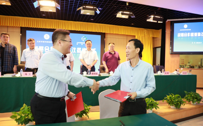 为加深联合研究、技术交流等方面的合作,共同推动行业发展,2020年9月17日,北京市朝阳循环经济产业园管理中心与北京市城市管理研究院签署战略合作框架协议,成为携手并进、共谋发展的战略合作伙伴,市城管委党组成员、副主任李如刚,市城管委一级巡视员贾明雁,朝阳区区长助理冯文及朝阳区城管委、园林绿化局、城管执法局、城管监督中心、环卫服务中心等单位负责人共同见证签约仪式。