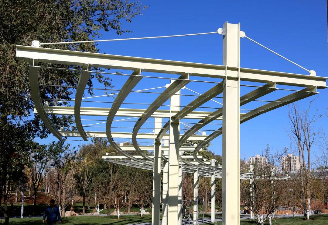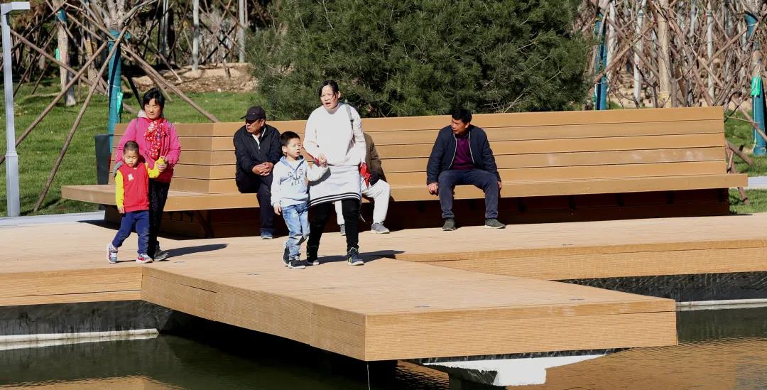 景观绿化设计选用常绿落叶、速生慢生、陆生湿生等不同生活型的树种组合搭配,穿插种植部分鸟噬树种,吸引鸟类,提升物种丰富度。另外,公园里还种植了地被菊、地被月季、八宝景天、宿根植物等几十种常见花卉、树木,空间上疏密有致、高低错落、遮蔽有序,实现“三季有花、四季常绿”。咸宁侯村绿地建设则以自然山水格局为设计出发点,将“山林溪谷”的山形水势作为公园景观空间的基础,通过起伏错落的地形创造层次丰富的“城市森林”同时,利用户外家具、游乐设施和活动区打造丰富有趣的活动空间。目前,已完成绿化4.5万平方米,形成“春花、夏繁、秋叶、冬绿”的四时景色。