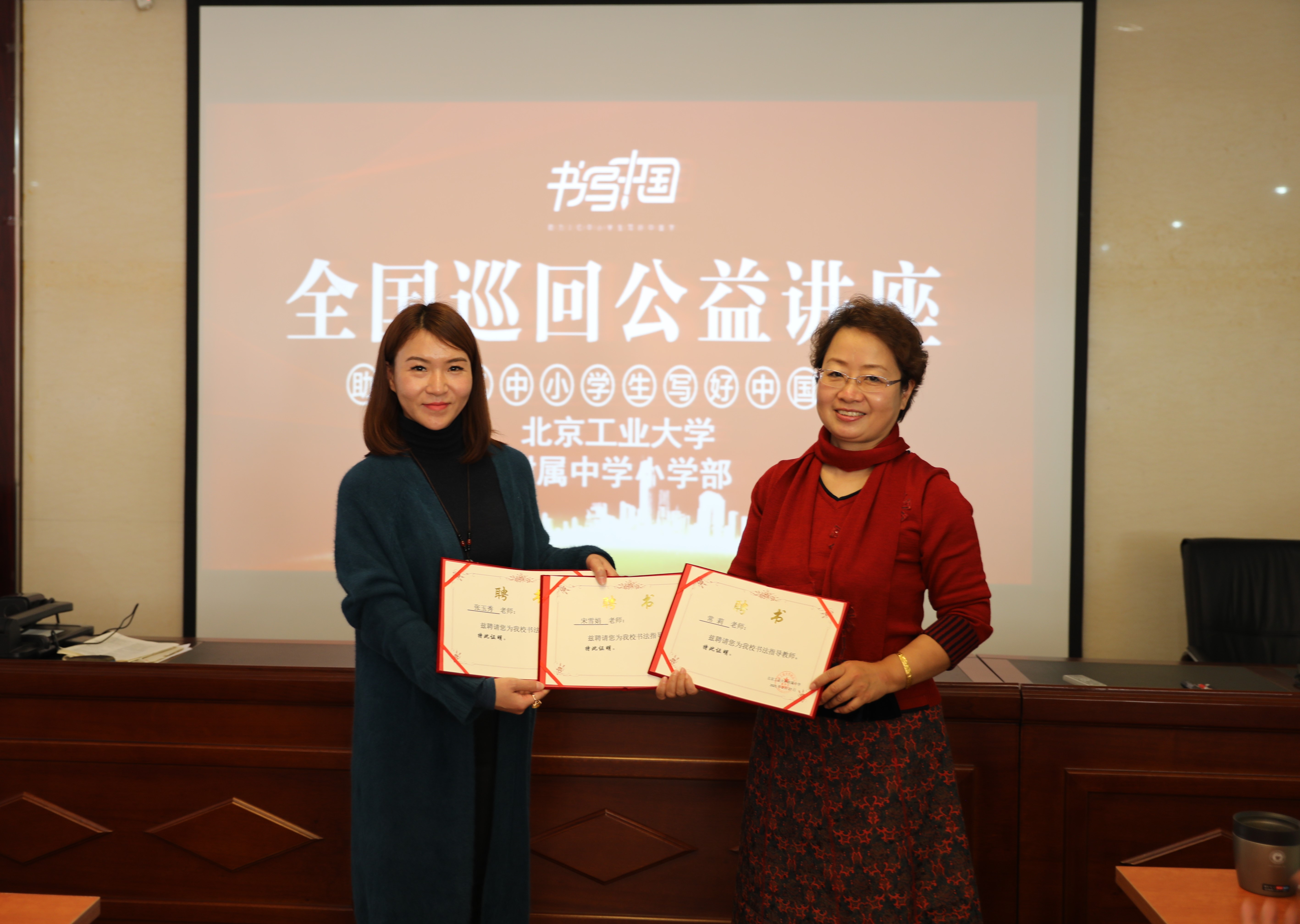 新学期开端,助力中小学生写好中国字公益讲座走进工大附中小学部。全体小学部教师在首城校区会议室迎来此次书写中国公益讲座活动。活动到场的领导和嘉宾有:侯保成副校长、董芳主任、杨金平副主任、李诺副主任以及书写中国创始人张法老师,北京依恩木兰公益基金会理事长霖田女士,北京依恩木兰公益基金会执行理事长陈艳女士等。