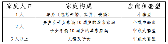 本次选房将备案家庭按照应配租套型分为三组,分别为第一组(中或大套型)、第二组(小或中套型)、第三组(小套型)。