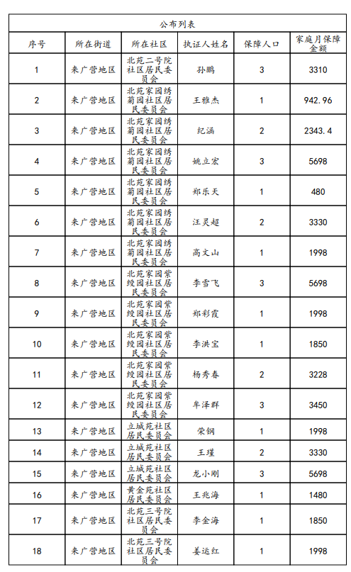 来广营地区2025年11月享受城乡低保公布