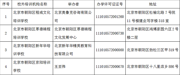 朝阳区第一批校外培训机构白名单已确定,现公布如下: