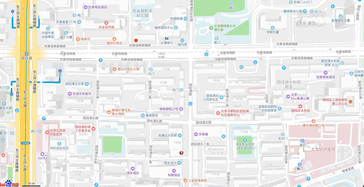乘车路线:地铁10号线团结湖站;115路、95路团结湖北口站;117路、635路、302路、31路、431路、672路、675路、特16路等团结湖站下车,向西步行至团结湖北一二条小区内。