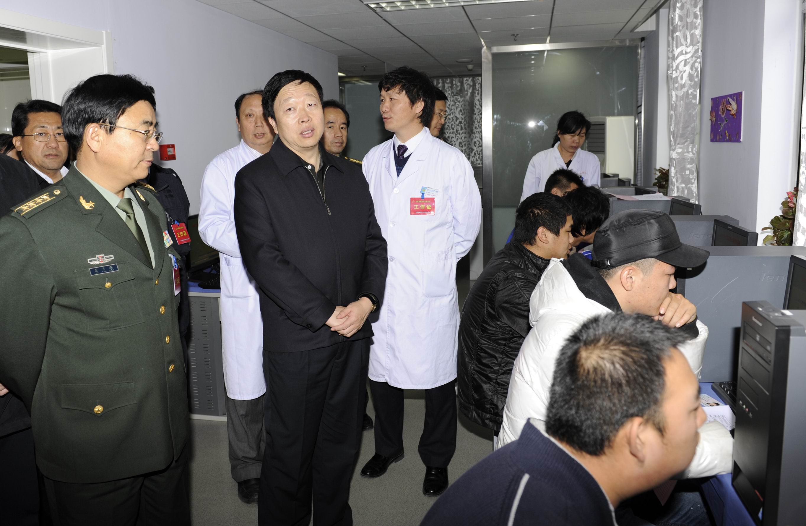 ,区领导程连元、佟克克、贾彦翎、王春、刘军胜到朝阳区第二医院,检查我区冬季征兵体检工作。