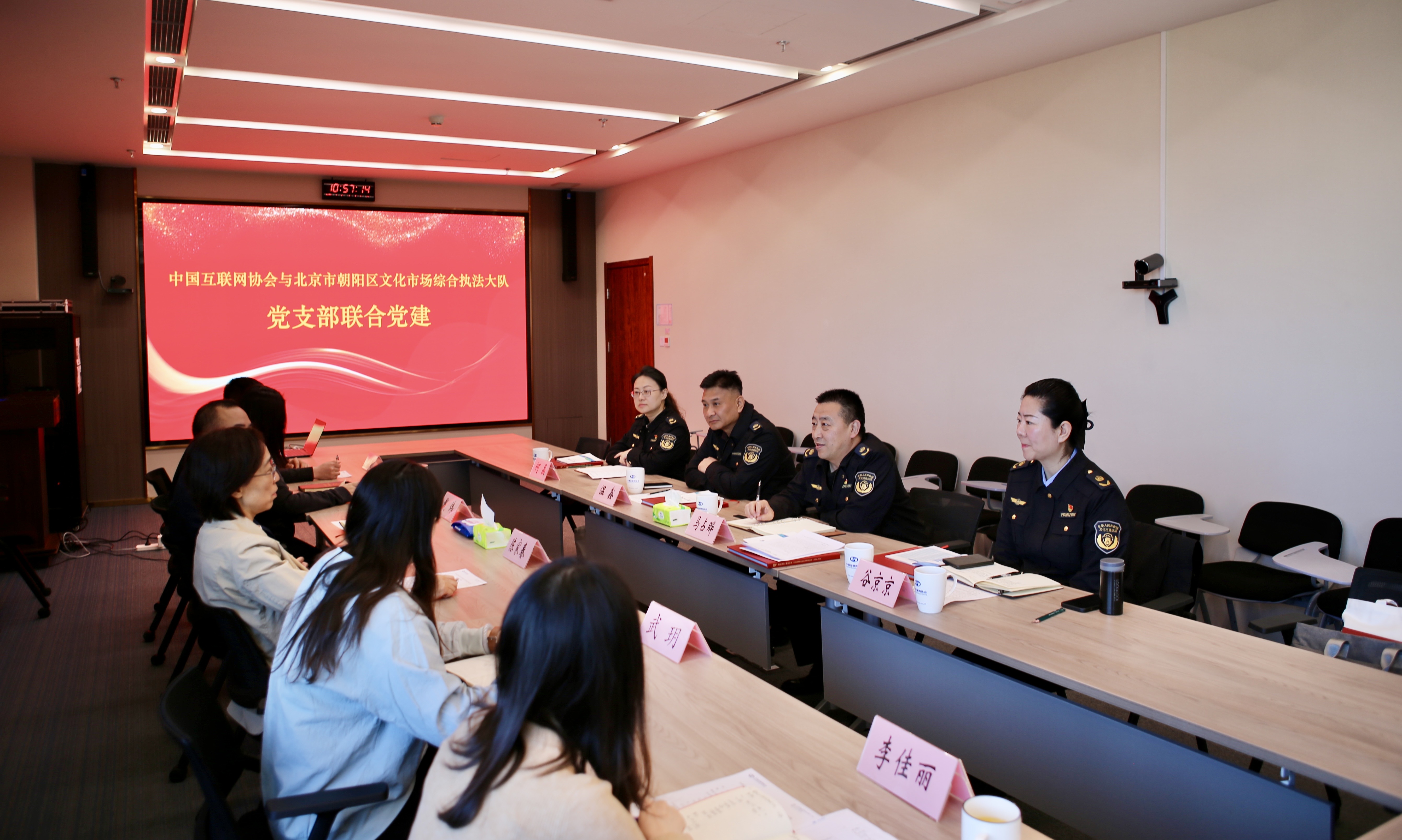 为进一步推动党建工作和执法业务工作深度融合,紧扣朝阳区文化市场综合执法大队五年六化发展计划,积极打造“党建+”工作模式,推动服务型执法新模式赋能行业监管。朝阳区文化市场综合执法大队党支部近日与中国互联网协会党支部开展支部共建工作,形成以党建工作助推执法各项工作高质量发展目标,不断激活市场活力,提升市场主体的获得感和满意度。