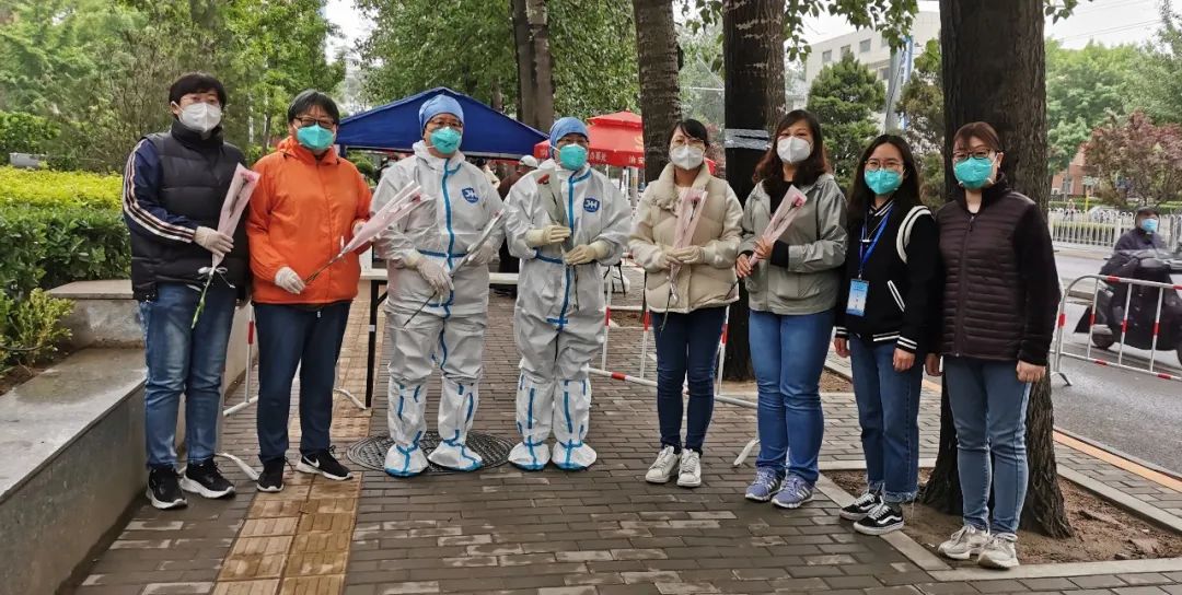 链家地产的工作人员为影协点位医护人员和党员志愿者送来了鲜花并表示慰问。