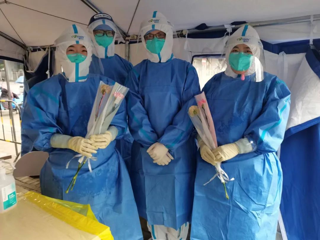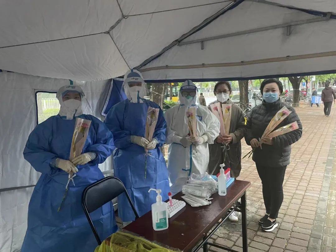 5月8日是和平街街道开展第九轮全员核酸检测的日子,又恰逢母亲节,街道内许多已为人母的工作人员与志愿者放弃与儿女一同度过节日的机会,仍选择坚守在各个核酸采集点进行着大规模核酸检测。