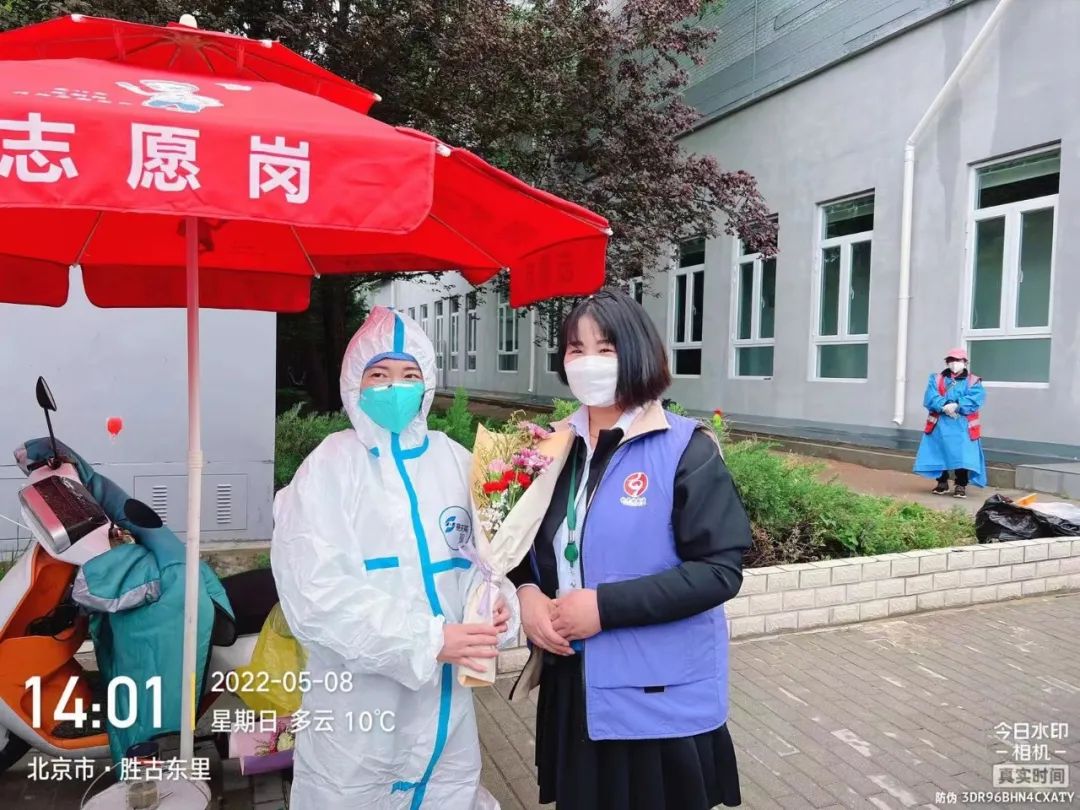 街道机关干部苑一鸣作为“疫”线妈妈中的一员,在母亲节这个特殊的日子里,她的女儿也来到现场,亲手为母亲献上了自己制作的花束,共同度过了一个温馨而有意义的节日。