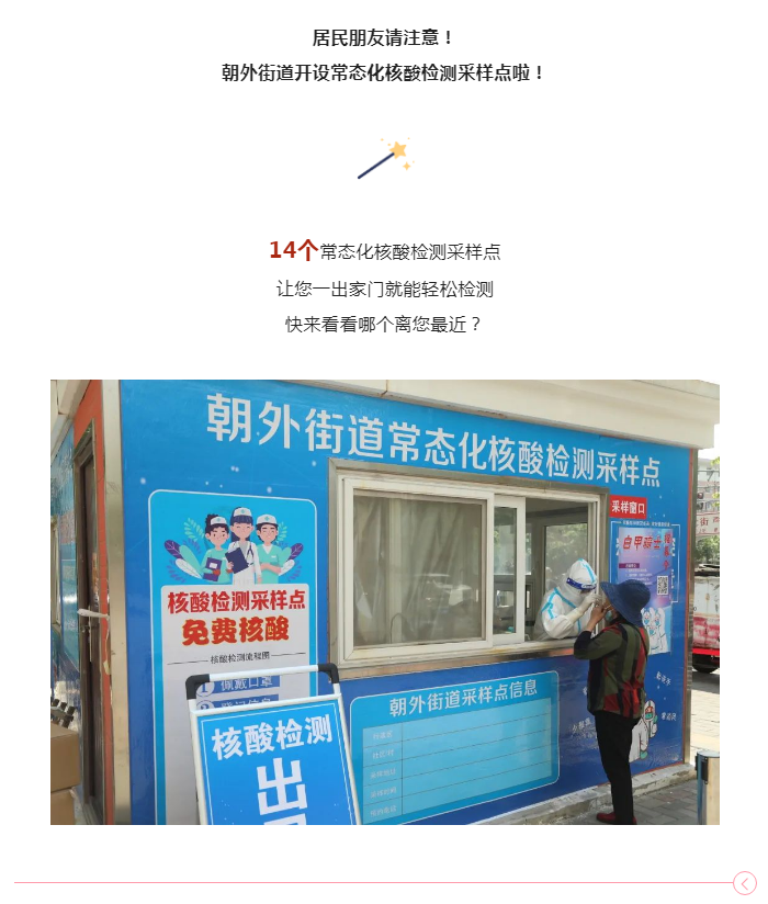 朝外14个常态化便民核酸检测点开放啦!详细点位→