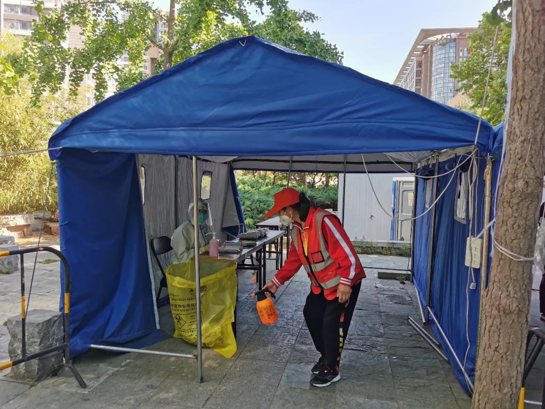 针对辖区内的核酸检测采样点,采取每半小时消杀一次的措施来切实保障点位环境的安全性。保洁队还会将产生的所有垃圾进行回收并交由专业公司进行集中处理。