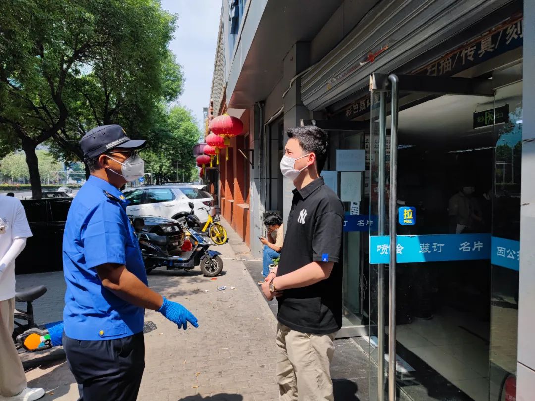 街道综合行政执法队对辖区内七小门店进行日常检查和监督,确保各门店防疫措施落实到位,对于未完善的门店进行整改提醒、张贴公示。
