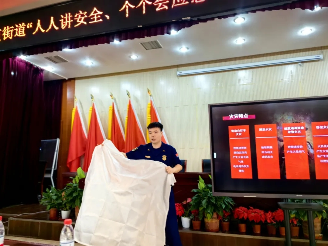 两位老师还详细讲解了烟头、厨房等常见火灾隐患的识别和防范以及楼道堆物堆料的隐患。烟头虽小,但如果处理不当,很容易引发火灾;厨房作为家庭火灾的高发区,更是需要大家提高警惕,注意用火用电安全;楼道堆放杂物多为易燃物品,一旦接触火源,极易发生火灾,且影响疏散逃生,保障安全通道畅通,及时清理楼道堆物堆料是保障居民安全的坚实基础。